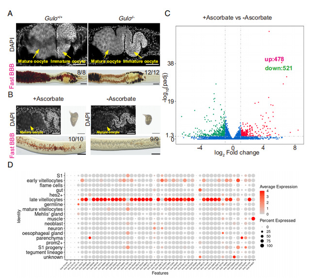 血吸虫病在全球影响超过2亿人,其病理损伤主要源于虫卵沉积引发的免疫反应。然而,研究团队前期发现血吸虫需要外源维生素C才能产生致病的正常虫卵。研究团队由此提出假设:维生素C缺乏可能通过影响虫卵形成,保护宿主免受严重病理损害。